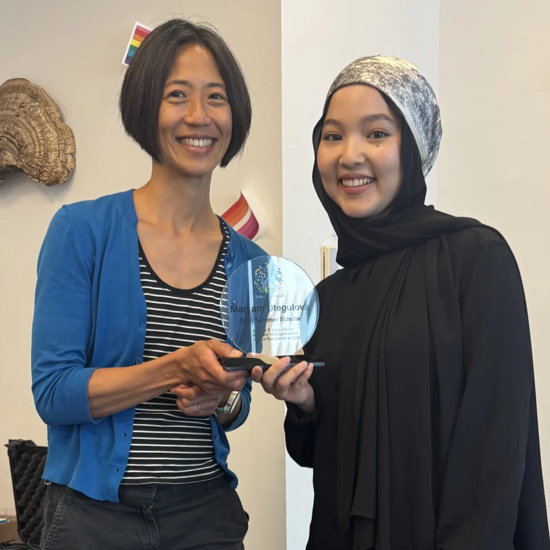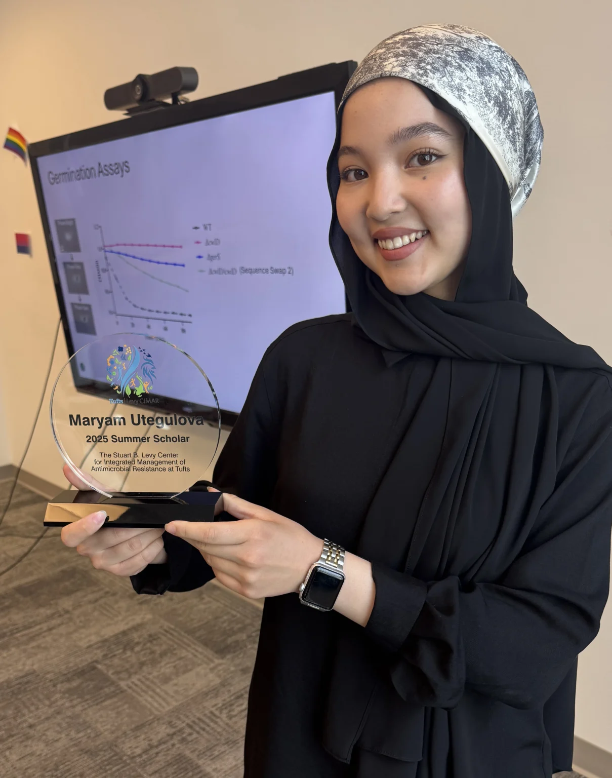 Curiosity has been a driving force in Maryam Utegulova’s life, extending beyond the classroom and intobusiness, travel, and the unseen world of microbes and disease. A 3rd-year biology major and management minor at the University of Massachusetts Boston (UMB), Maryam was one of just two scholars selected for the Summer 2025 Levy CIMAR Undergraduate Internship in Science and Medicine.